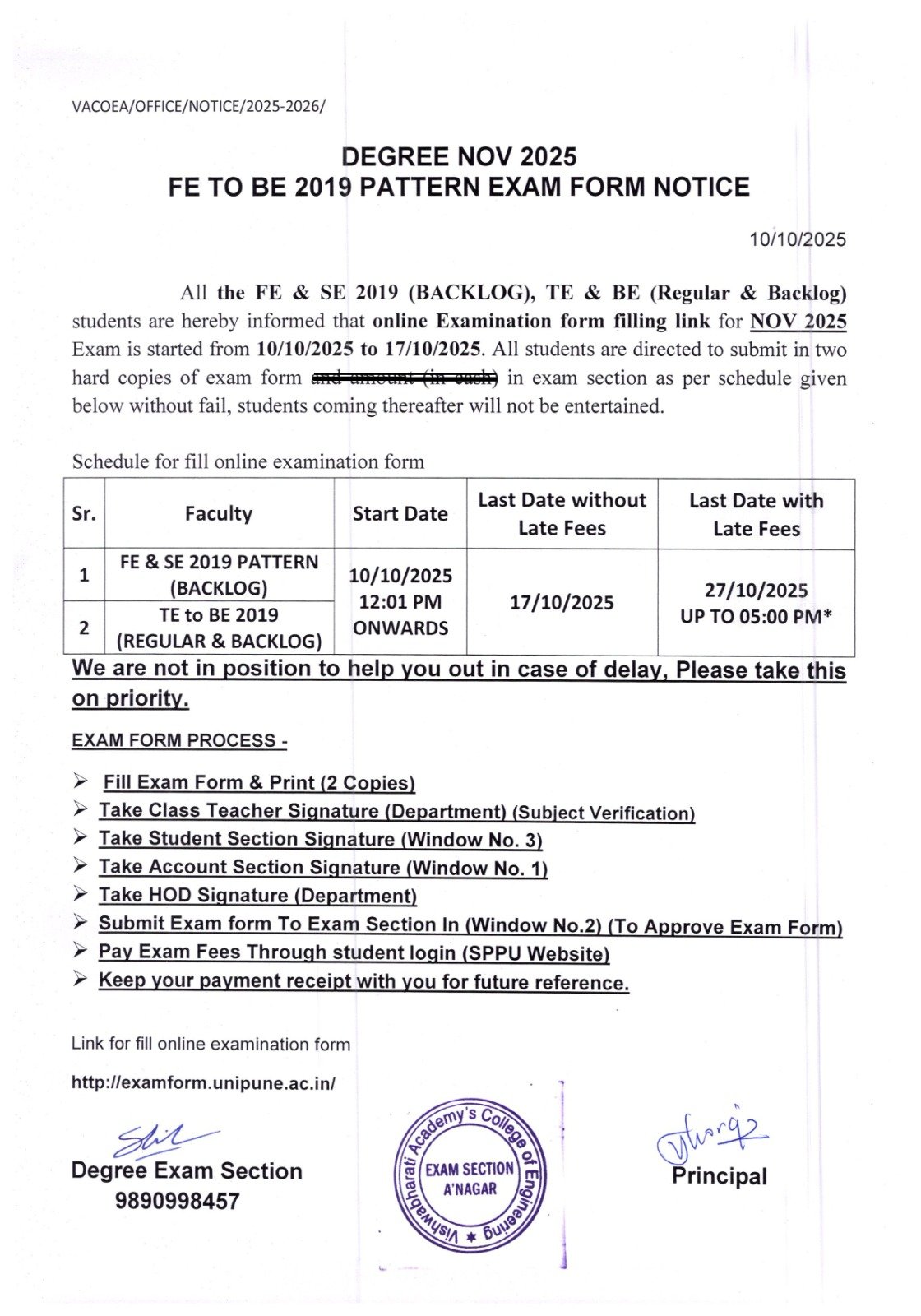 FE TO BE 2019 PATTERN EXAM FORM NOTICE Leave a Comment / By aprna.mahajan@gmail.com / October 11, 2025